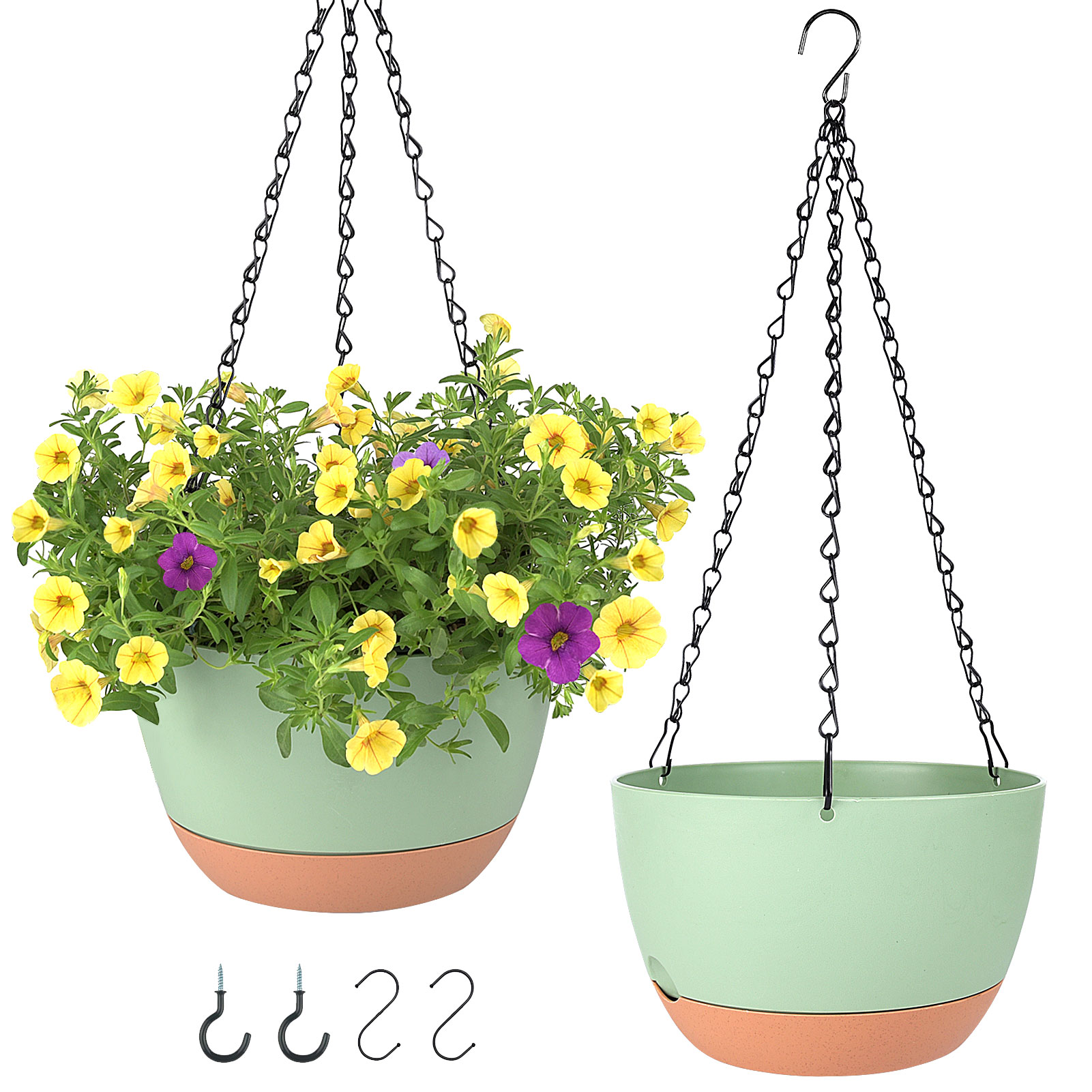 Te Matuer 2 Pack 8 Inch Hanging Planters for Indoor and Outdoor Plants, Self Watering Hanging Planter, Plastic Hanging Flower Pot Basket with Drainage Holes for Home Garden(Green)
