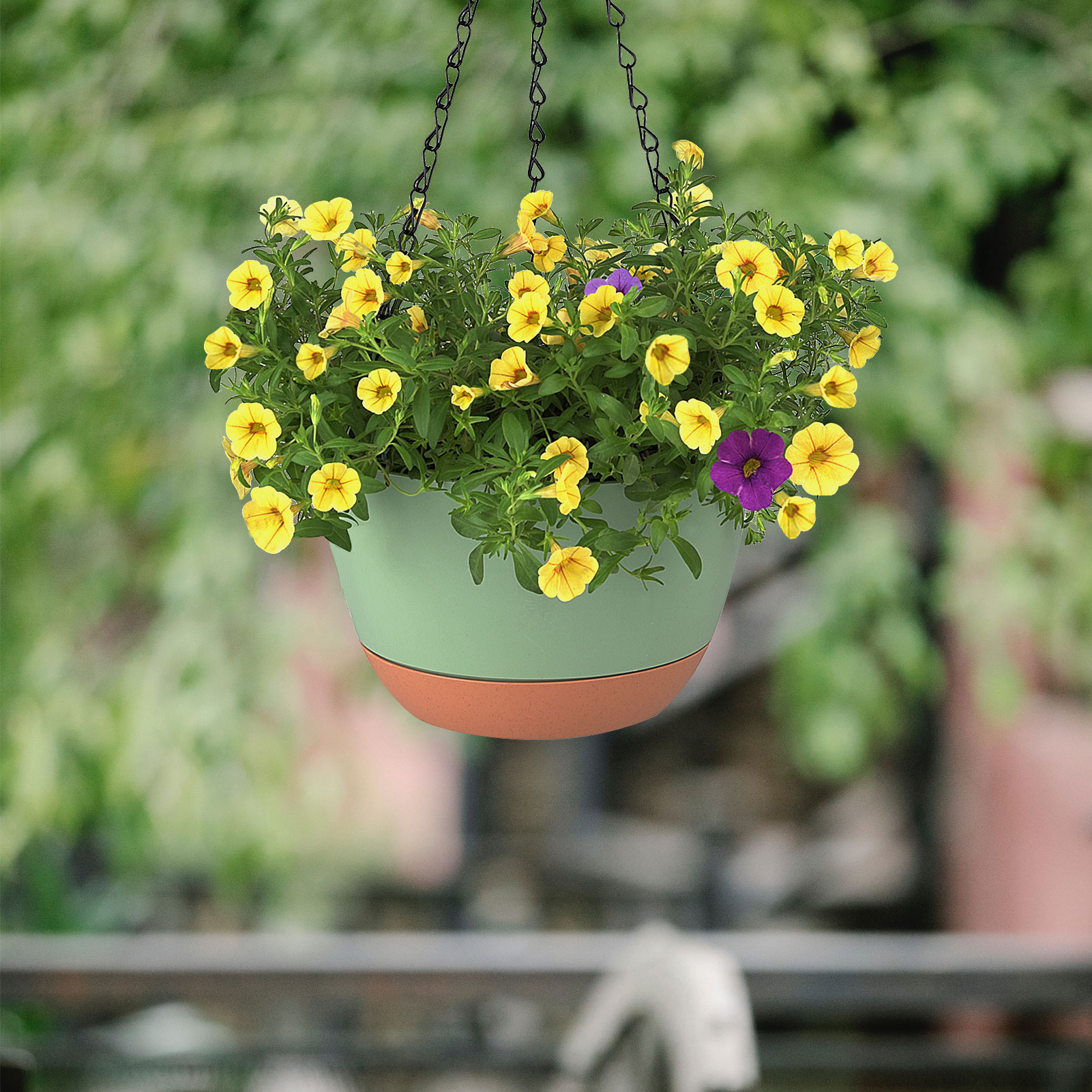 SMART DESIGN: Self Watering Hanging Planter With Detachable Reservoir. These 8 inch plastic flower pots separate the potting soil and water, preventing the fragile roots and rotten roots from being flooded. The extending design of the bottom ensures the soil can reach the water. No more worrying about your plants drying out.